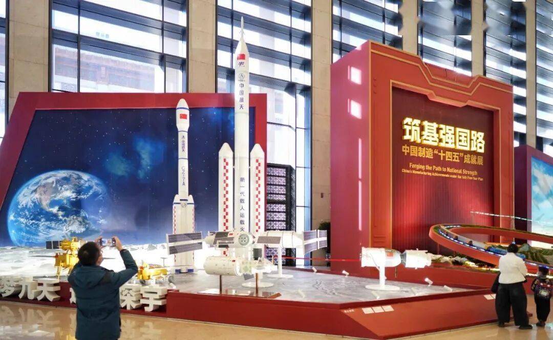 中国国家博物馆日前开幕的筑基强国路——中国制造十四五成就展,集中展示了我国制造业高质量发展的历史性成就。展览由中国国家博物馆与工信部新闻宣传中心联合举办,为期5个月,设置高端制造、产业基础、智能制造等六大板块,展出300余件(套)实物及高精度大型模型,其中航天科技集团研制的空间站、载人飞船、祝融号火星车、嫦娥六号探测器等航天重器最为瞩目。